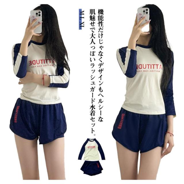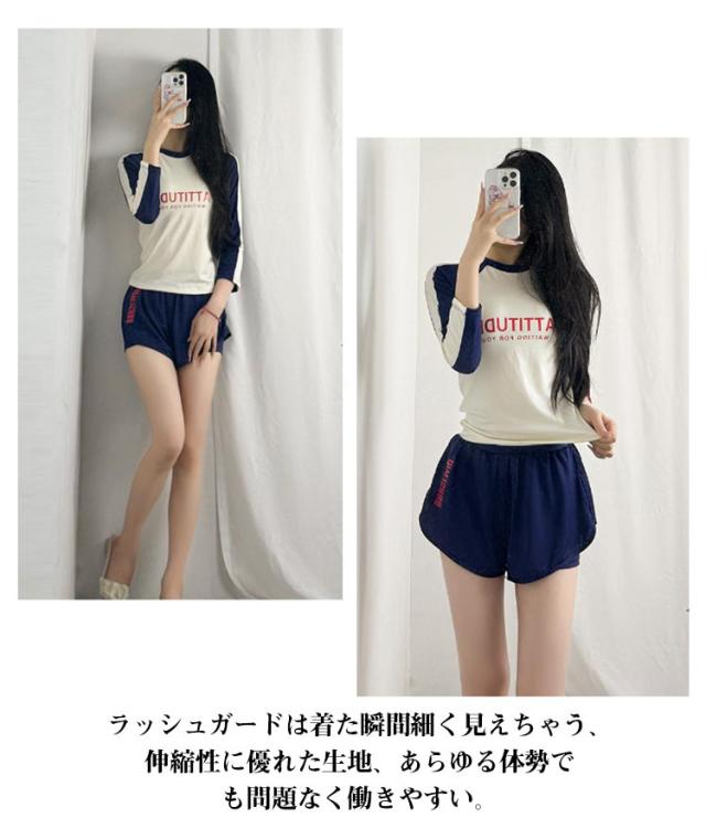 中学生 スクール水着 体型カバー プール 学生 海 高校生 ラッシュガード 2点セット ショートパンツ 女の子 可愛い ラッシュガード UVカット 水着 みずぎ スポーツウエア 通気性 伸縮性 快適 日焼け肌荒れ対策 おしゃれ セット 大きいサイズ
