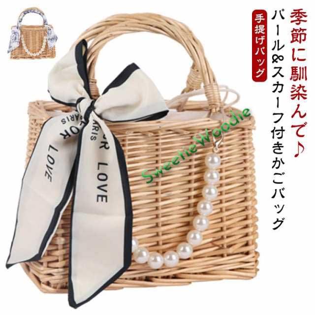 パールカゴバッグ パール付き かごバッグ かごバッグ おしゃれ 巾着 浴衣バッグ 浴衣 カバン バッグ 藤カゴバッグ 浴衣バッグ スカーフ付き パールカゴバッグ パール付バッグ 自立 サマーバッグ 夏バッグ パール お出かけ 買い物 花火大会 お花見 鞄