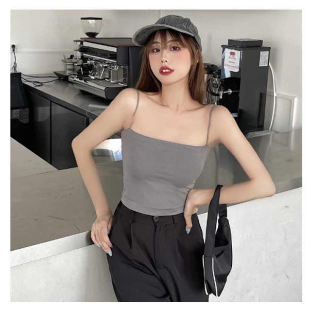 吸汗速乾 タンクトップ カップ付き 細ストラップ ストラップ ショート丈 キャミソール レディース 下着 肌着 無地 シンプル パッド入り 細ストラップ 部屋着 通気性 伸縮性