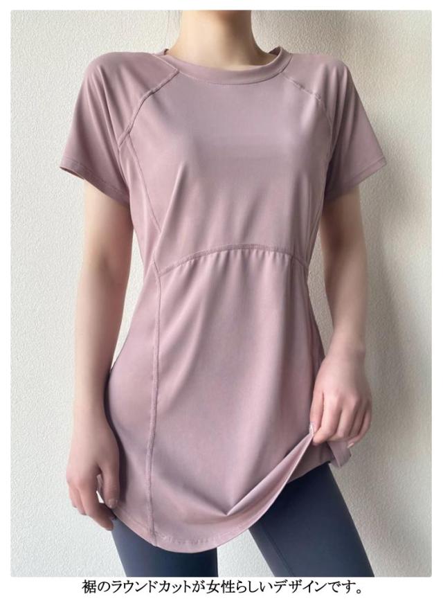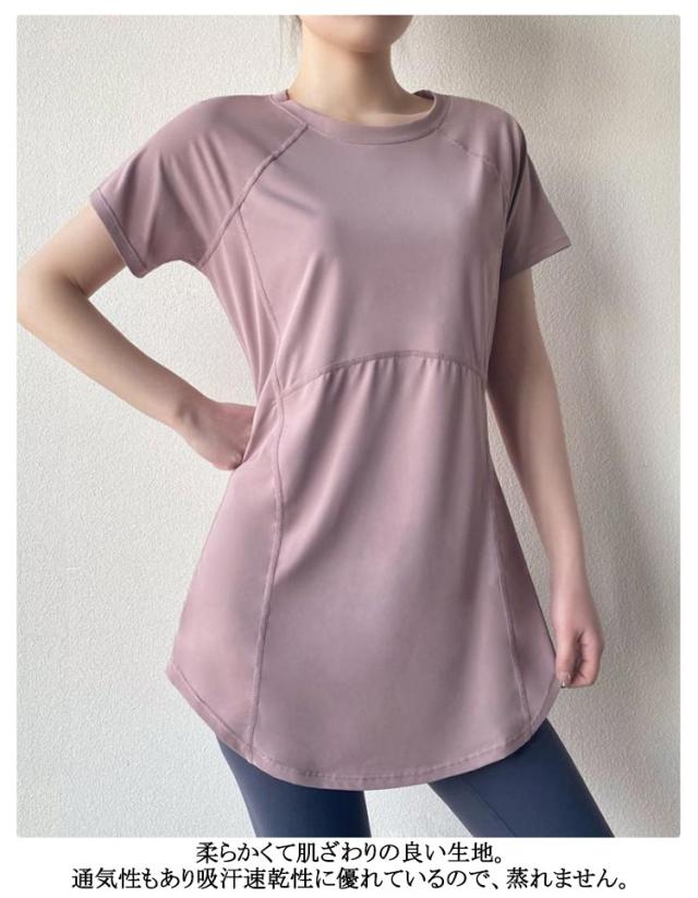 ヨガウェア ロング丈 トップス 伸縮性 ヨガtシャツ ヨガトップス 薄手 おしゃれ ウェア レディース 半袖 ピラティス 丈長め ヨガウェア かわいい ゆったり 黒 スリット スポーツ フィットネス ジムウェア ホットヨガ ストレッチ ダンス