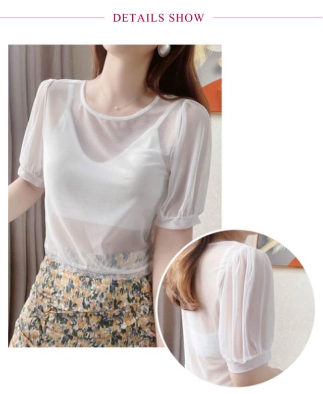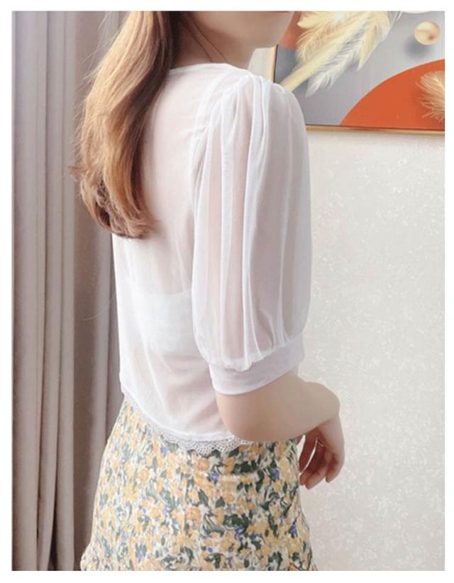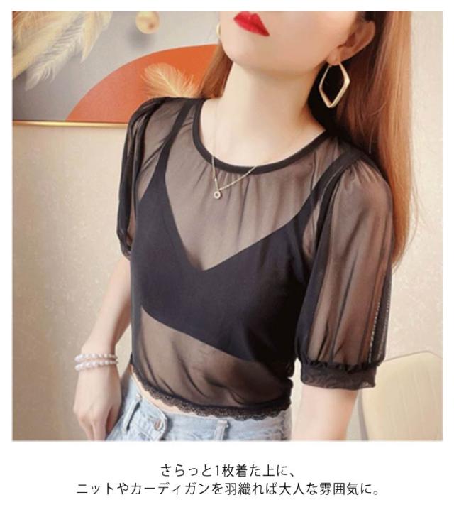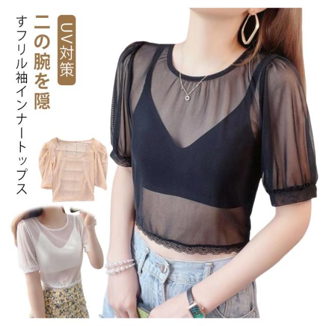重ね着 シアー 付け袖 インナー ショート丈 レース 隠し 半袖 インナー Tシャツ 柄 透かし彫り レイヤード 五分袖 薄手 ブラック 二の腕 透け感 クルーネック フレアスリーブ 二の腕カバー 着痩せ 細見え 上品 ホワイト 体型カバー UV対策 冷房対策 春 夏