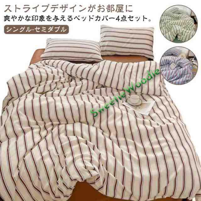フラットシーツ かわいい 3点セット ストライプ 韓国 シーツセット 北欧 布団カバーセット 布団カバーセット 綿100% シングル 寝具 枕カバー 丸洗い 防ダニ 抗菌 防臭 洋式 掛け布団カバー おしゃれ オールシーズン
