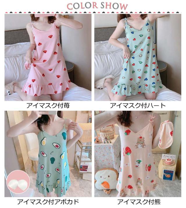 ルームワンピース 女子 可愛い カップ付き ルームウェア アイマスク付!2点セット タンクワンピ 部屋着 アイマスク付!2点セット 夏 レディース ひんやり ナイトブラ ワンピース パジャマ パジャマ 寝間着 レディース ホームウェア ゆったり