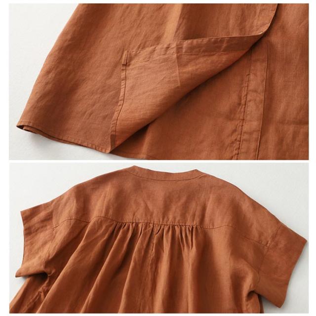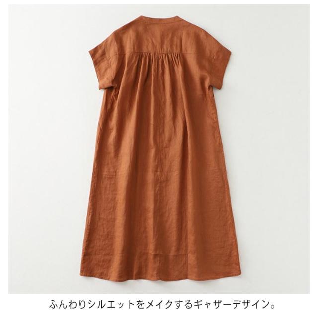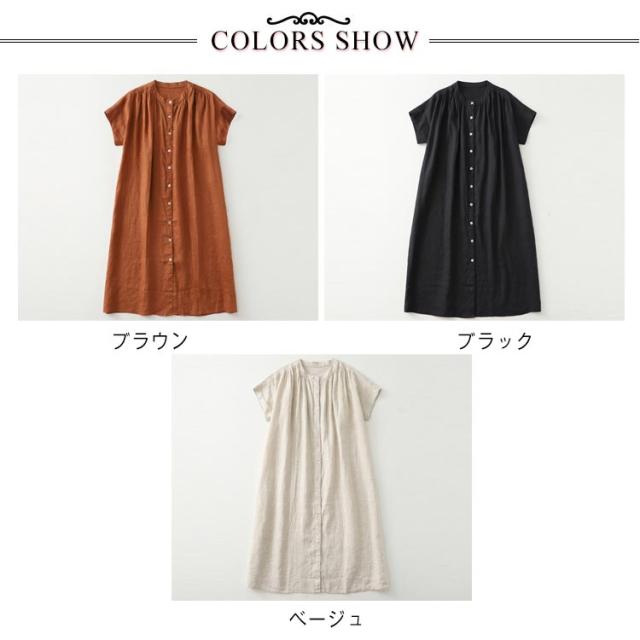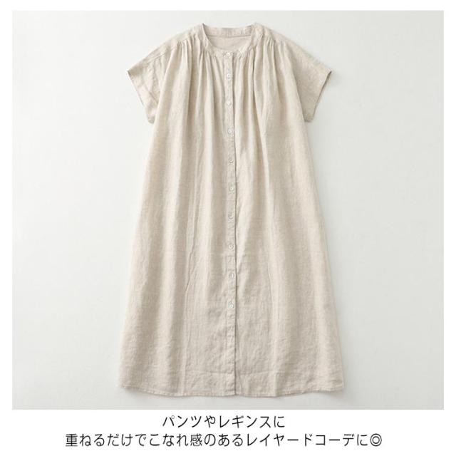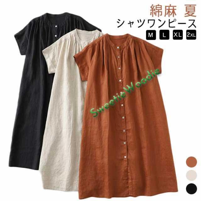 送料無料 シャツワンピース レディース シャツブラウス オフィス 綿麻 半袖ワンピース チュニック ドロップショルダー 夏ワンピ バンドカラー ミモレ丈 ギャザー 着痩せ 前開け シンプル ゆったり 送料無料 大人 OL 通勤