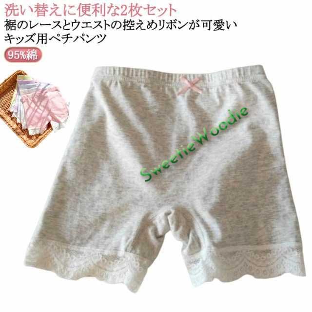 | 洗い替えに便利な2枚セット 裾のレースとウエストの控えめリボンが可愛いキッズ用ペチパンツ。 スカートやワンピースなどの下に履いてめくれ防止に◎ | |