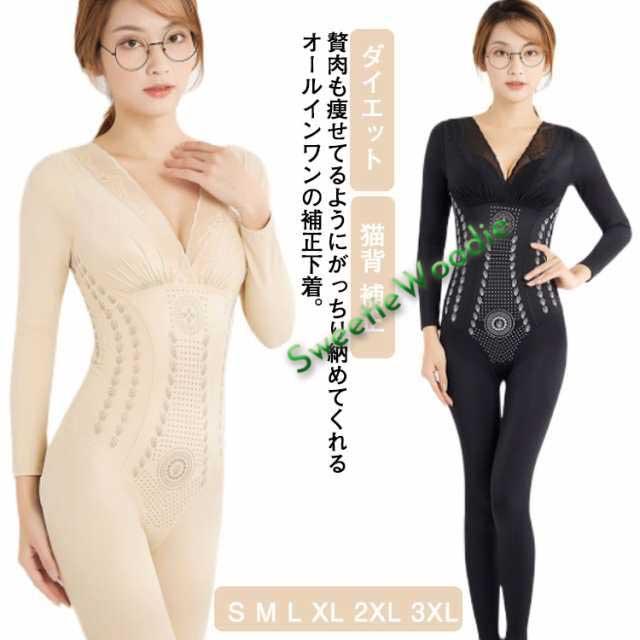 送料無料 ボディスーツ レディース ボディシェイパー 補正下着 くびれ お腹 引き締め 骨盤ガードル 太もも 痩せ ダイエット 猫背 補正 下着 インナー 長袖 薄手 通気 伸縮 花柄レース ボディシェイパー 補正インナー コルセット