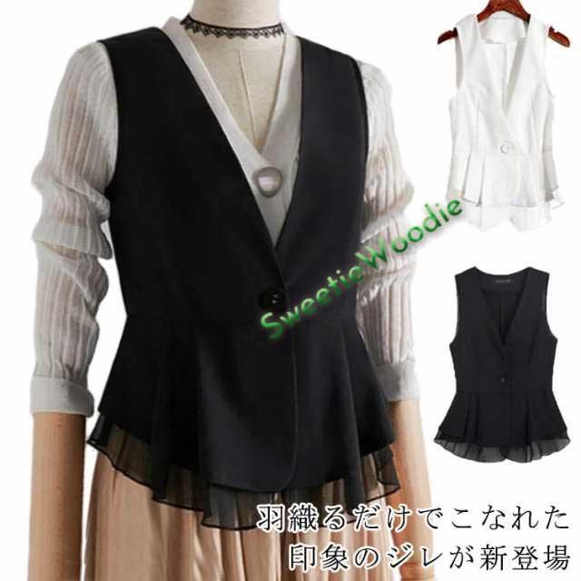 ジレ レディース フォーマル ベスト 春 夏 ロング テーラードベスト スーツベスト ノースリーブ 薄手 前開き トップス ゆったり シンプル 羽織り 無地 通勤 オフィス カジュアル 重ね着 OL キレイめ 黒 白 ブラック 20代 30代 40代 事務服 制服 送料無料