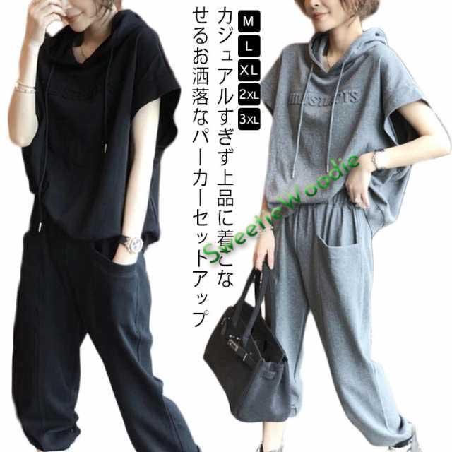 スウェット上下セット レディース カジュアルセットアップ スウェット上下セット 着痩せ ジャージ 上下セット 2点 半袖 夏 おしゃれ フード付き スウェットパンツ 無地 ゆったり スウェット 半袖 春秋 大きいサイズ シンプル 部屋着 運動着 スポーツ お出かけ ギフト