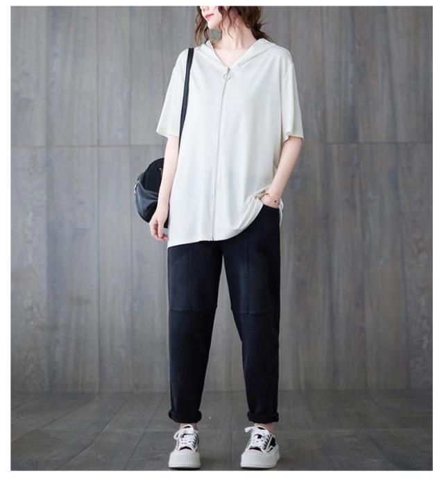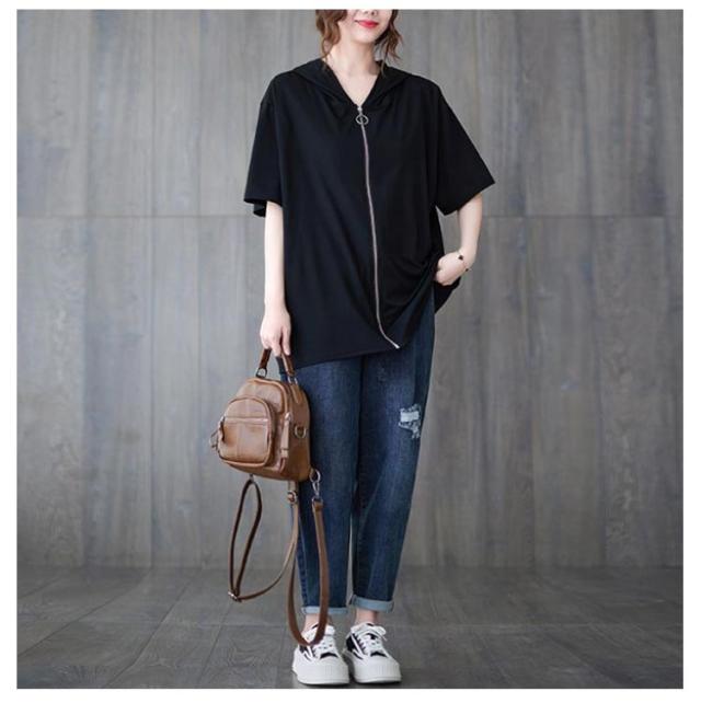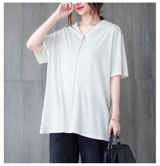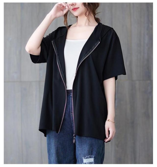 | 6size 夏用フード付き、ビッグシルエットのジップアップパーカー | |