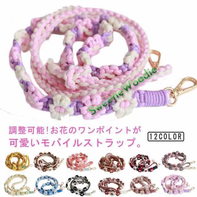 スマホショルダーストラップ スマホストラップ 調整可 スマホ スマホストラップ 韓国風 ショルダーストラップ スマホショルダー ストラップ ロング 斜めがけ ストラップ 手編み 紐 マクラメ編み 手作り 花 可愛い
