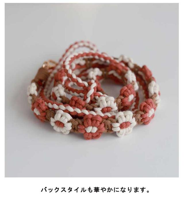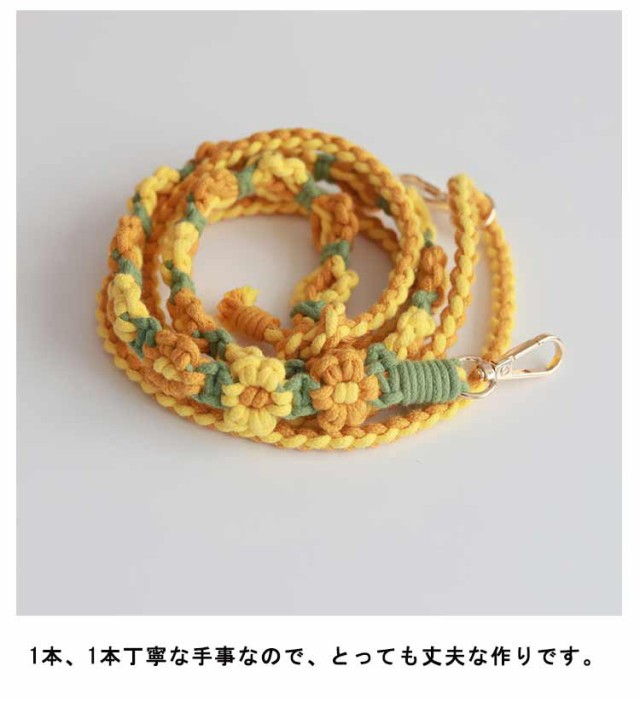 | 調整可能!お花のワンポイントが可愛いモバイルストラップ。 雰囲気のある色あいで、お気に入りのコーデに合わせてカラーが選べます。 どのような様々な携帯ケースにも付けやすいカラビナタイプ。 金具はゴールドカラーでミニバッグとの相性も◎ 1本、1本丁寧な手事なので、とっても丈夫な作りです。 太めのマクラメ編みなので肩への負担もかかりにくいデザイン。 バックスタイルも華やかになります。 自分用にもプレゼントとしても喜ばれるアイテムです♪ | |
