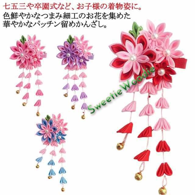 髪飾り 七歳 3歳 パッチンピン 7歳 子供 五歳 紫 花 七五三 花 着物 つまみ細工 パッチン留め 赤 黒 ピンク 七五三 和装 黄 5歳 ヘアアクセサリー 753 三歳 袴 桃の節句 浴衣 卒園式 卒業式 十三参り 十歳の祝い