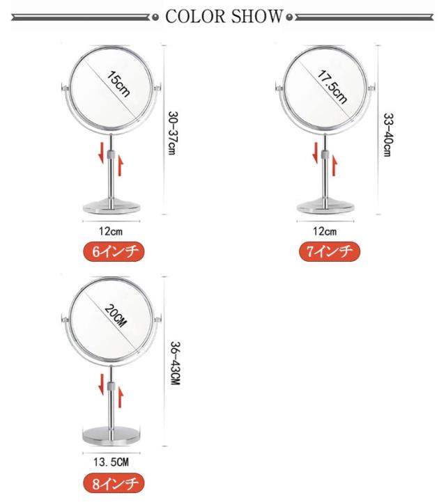 拡大鏡 店舗 調整 高さ 卓上ミラー 見やすい 裏面 3倍/5倍/10倍 スタンドミラー 卓上 スタンド ミラー メイク用 両面 ショップ 高さ調整 卓上ミラー 両面鏡 上品 安い 拡大鏡付き 6インチ 7インチ 8インチ 鏡 卓上 拡大鏡 卓上メイクミラー 拡大鏡化粧