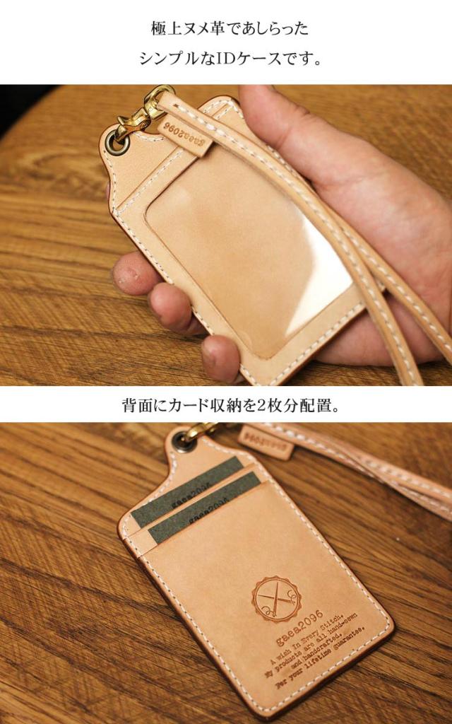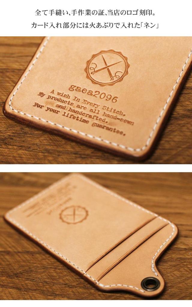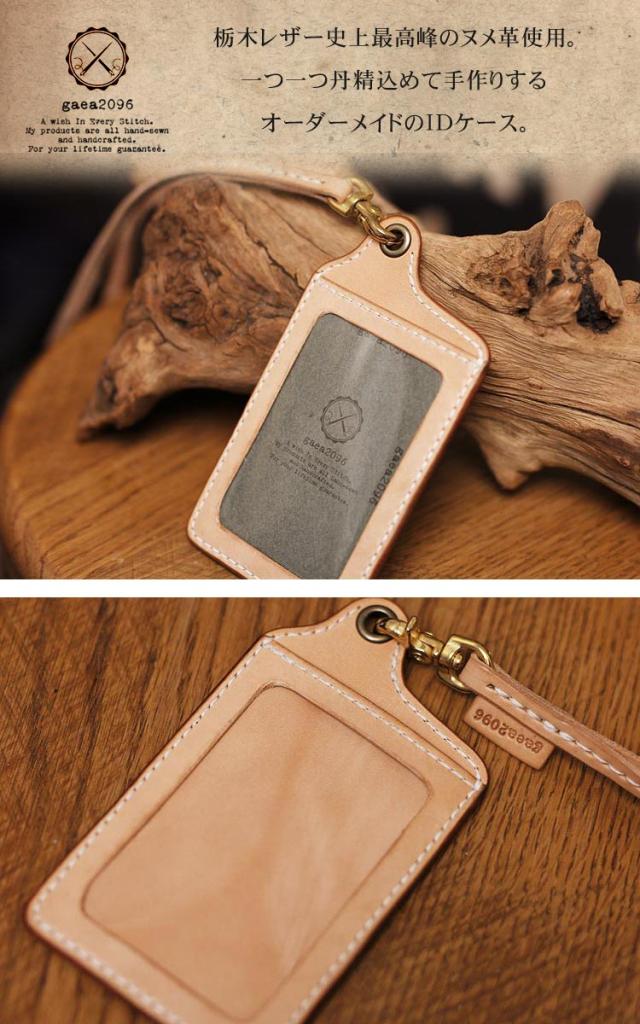 IDカードホルダー ヌメ革 サドルレザー 革ケース 栃木レザー 手縫い オーダーメイド 職人 ネックストラップ付 社員証入れ ガイア2096