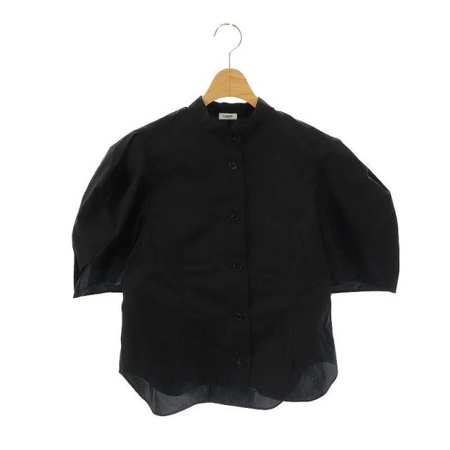 【中古】ロエフ LOEFF グロッシー タフタ パフスリーブ ブラウス バンドカラーシャツ 黒 /MI ■OS ■SH レディース