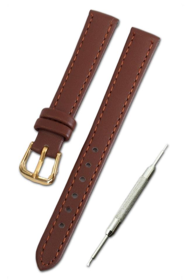 【シンプル革ベルト 茶 12mm】時計ベルト 時計バンド ストラップ 腕時計【バネ棒外しセット】