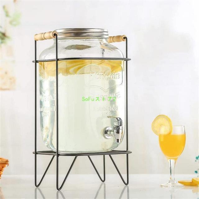 ドリンクサーバー ガラス ジャグ ガラス飲料ディスペンサー飲料ボトル貯蔵タンク 蛇口付き大容量ガラス保存ボトルプ 梅酒 ジュース ビール 保存容器 密閉缶 キッ