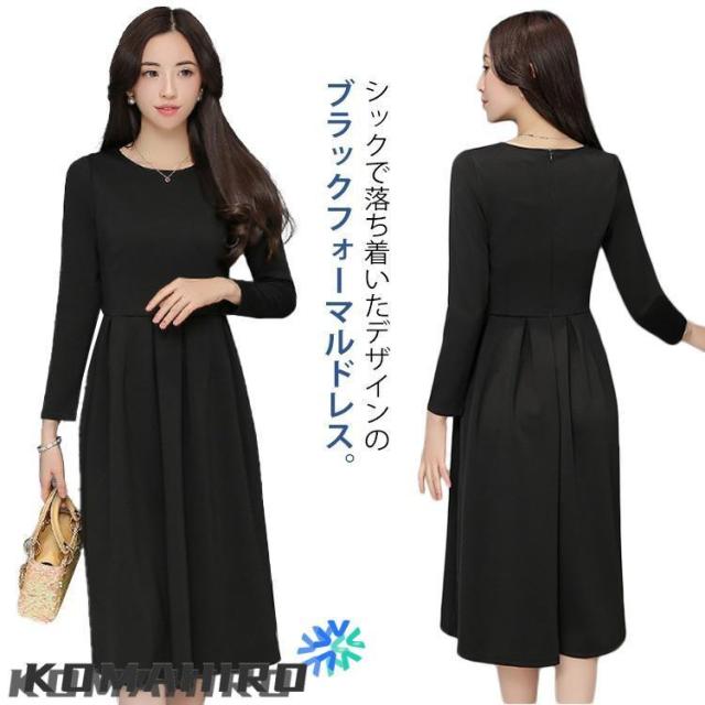 ブラックフォーマル ブラック フォーマル ワンピース 喪服 礼服 きれいめ 黒 フレア Aライン ドレス ひざ丈 長袖 半袖 30代 40代 50代