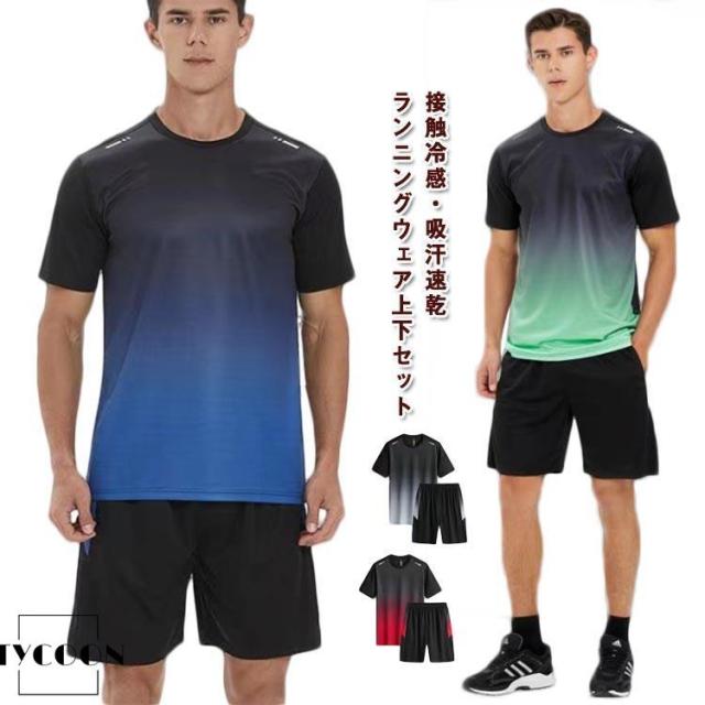 スポーツウェア 薄手 吸水速乾 メンズ ランニングウェア 上下セット 短パン 上下 2点セット 夏 半袖 ハーフパンツ 接触冷感 上下セット 軽量 カ