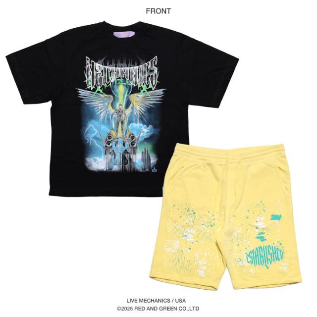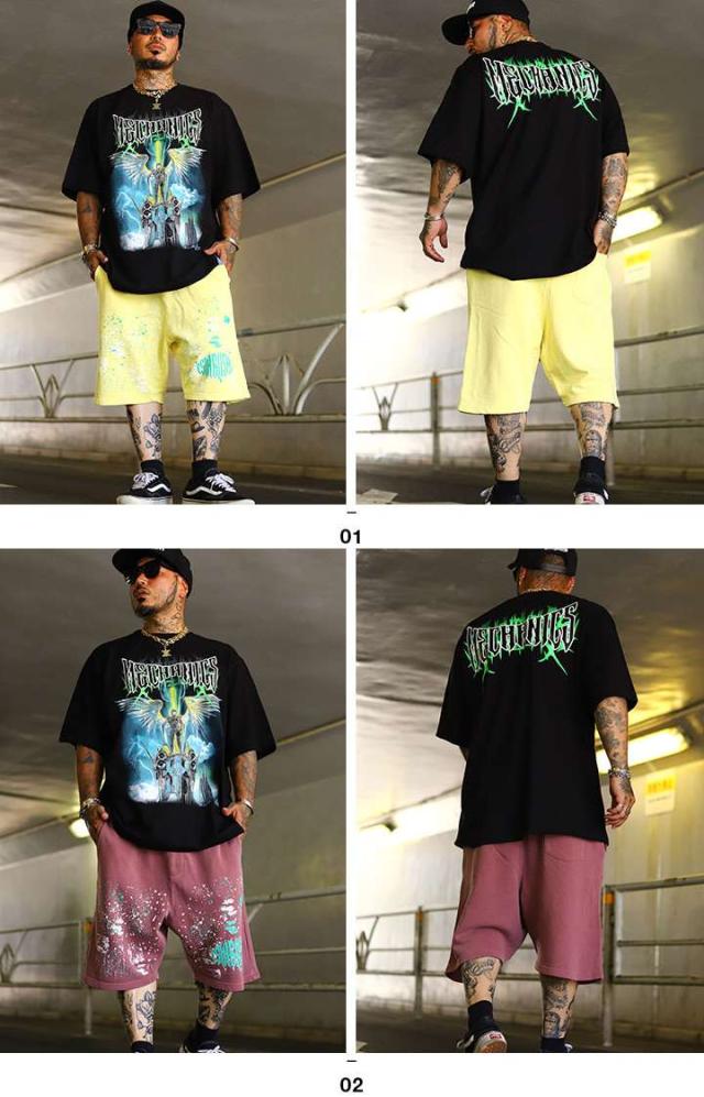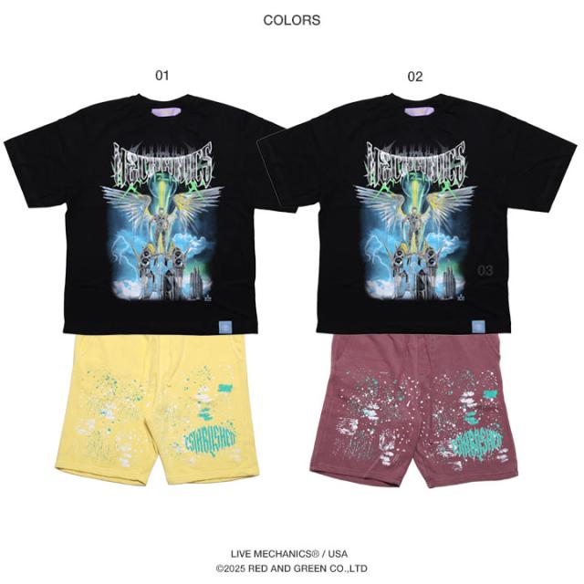 【25%OFF】LIVE MECHANICS 上下セット 半袖 Tシャツ ハーフパンツ メンズ 春夏用 全2色 大きいサイズ ライブメカニクス セットアップ ショートパンツ 派手 スーパーロボット 翼 ビッグシルエット b系 ヒップホップ ファッション ストリート系 ハイ LMSUMT119-WES4