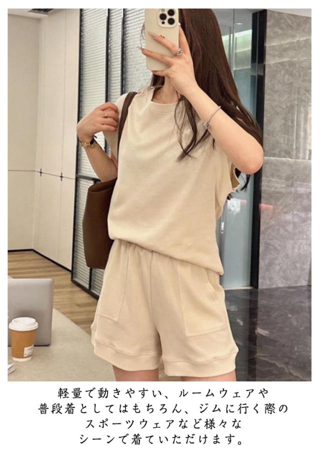 フレンチスリーブ ランニング レディース 夏 Tシャツ ショートパンツ 上下セット 夏 パジャマ 短パン セットアップ トレーニング スウェット ルームウェア 部屋着 可愛い お洒落