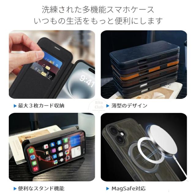 iPhone17 ケース 手帳型 MagSafe対応 iPhone16E ケース iPhone15 iPhone15Pro ケース iPhone16Plus 16ProMax ケース iPhone17ProMax ケース iPhone 17 16 15 ProMax ケース iPhone 16 スマホケース RFIDブロッキング ワイヤレス iPhoneAir 携帯ケース