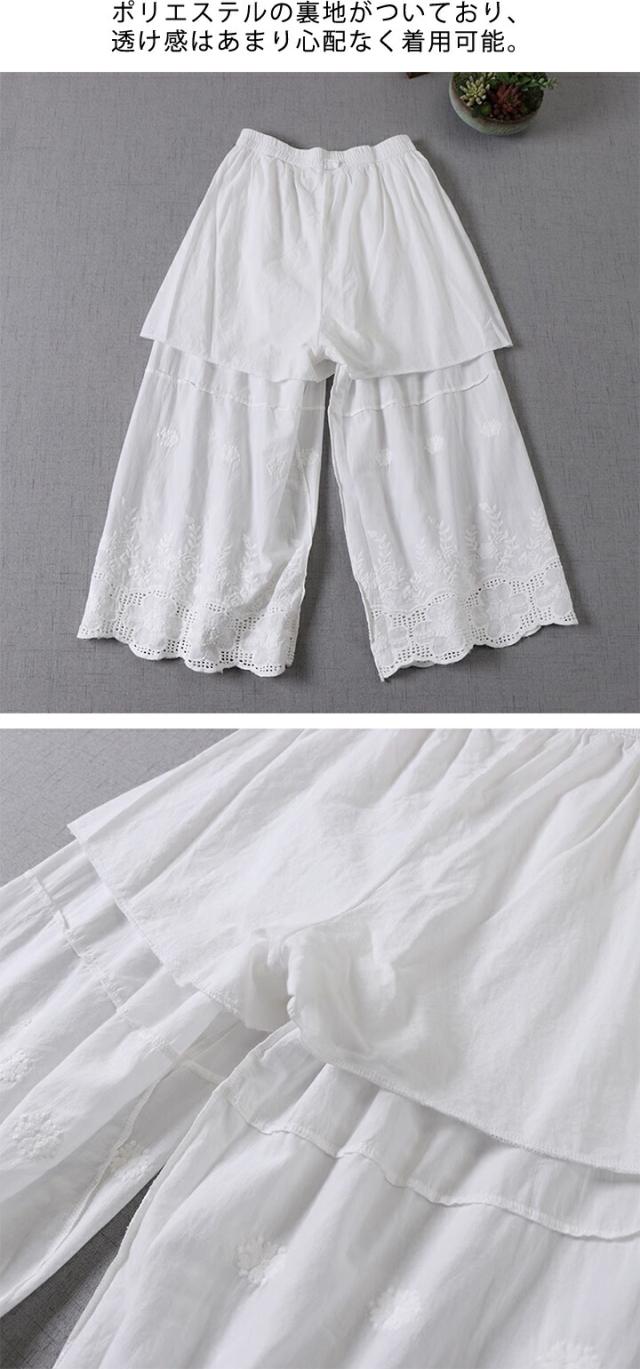 ペチコートパンツ レディース ペチパンツ ペチコート インナー パンツ レース ロング 春 夏 透け防止 重ね着 レイヤード ゆったり ワイドパンツ 夏ボトムス 重ね着風 スカーチョ