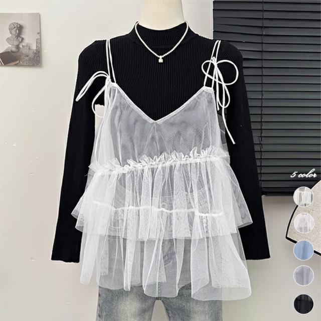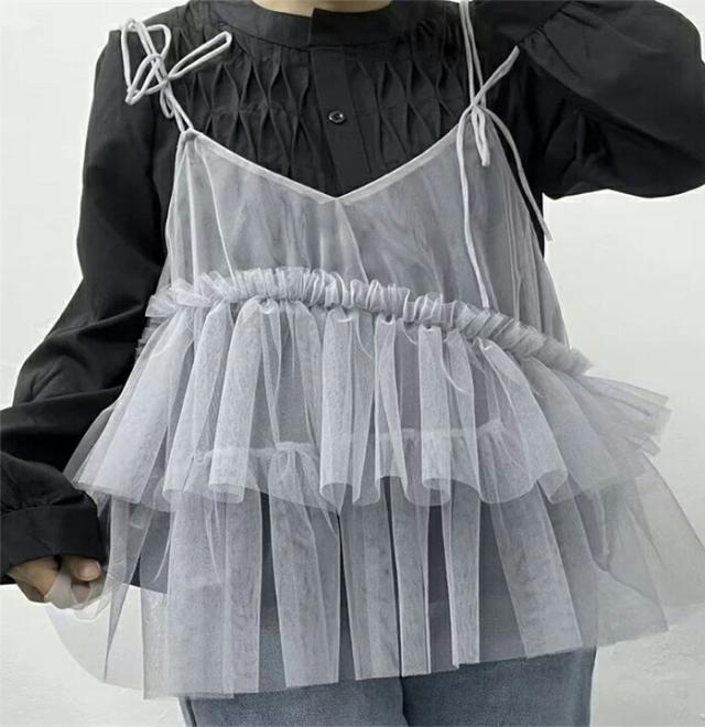 チュールキャミトップス フリルチュールキャミトップ レディース 春 夏 秋トップス 大人可愛い トップス 無地 韓国ファッション エレガントブラウス