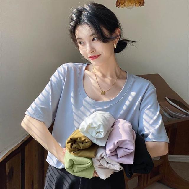 レディース シャツ Tシャツ ショート 半袖 Uネック ストレート かわいい 大人可愛い きれいめ シンプル カジュアル おしゃれ レトロ こなれ感 ラフ メンズライク ガーリー ルーズ クール 抜け感 無地 夏 デート お出かけ 休日 普段使い 着回し 流行 定番 S M L XL ゆったり ゆる 白 ホワイト 黒 ブラック ブラウン ライトグレー アプリコット ライトグリーン