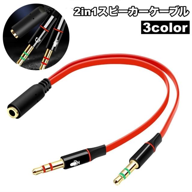 スピーカーケーブル 変換ケーブル 2in1 アダプターケーブル 単品 オーディオ機器 オーディオケーブル ヘッドホン マイク イ