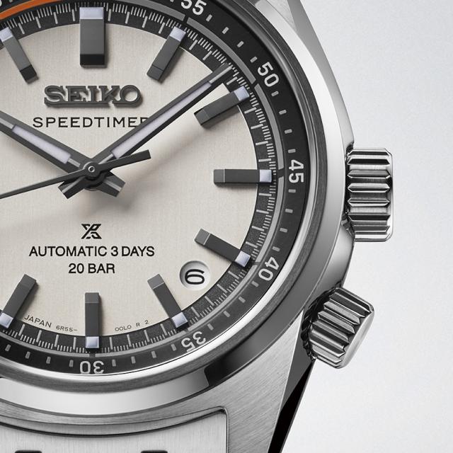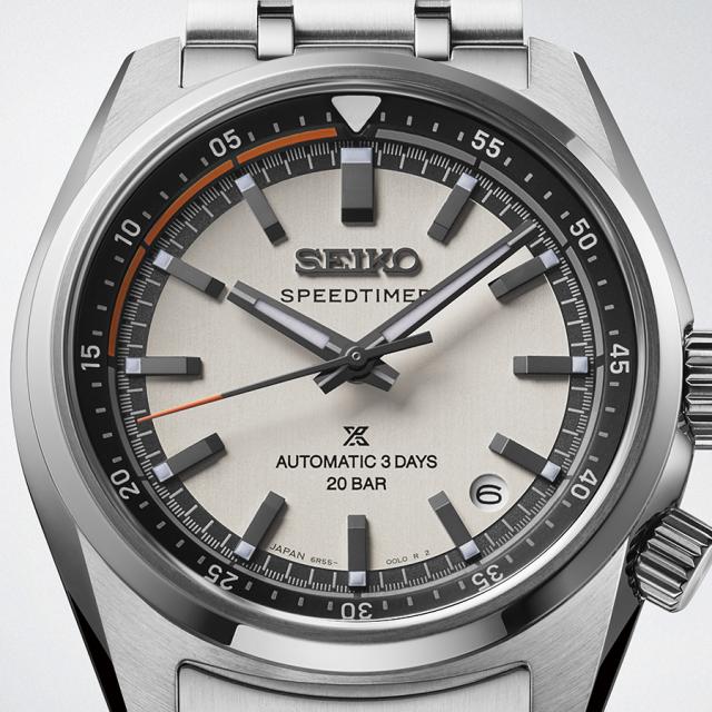 1970年代のセイコースポーツウオッチに見られる“フローシェイプ”の流麗なケースラインを踏襲しつつ、最大約3日間(72時間)の駆動を実現する6R55キャリバーを搭載しています。
