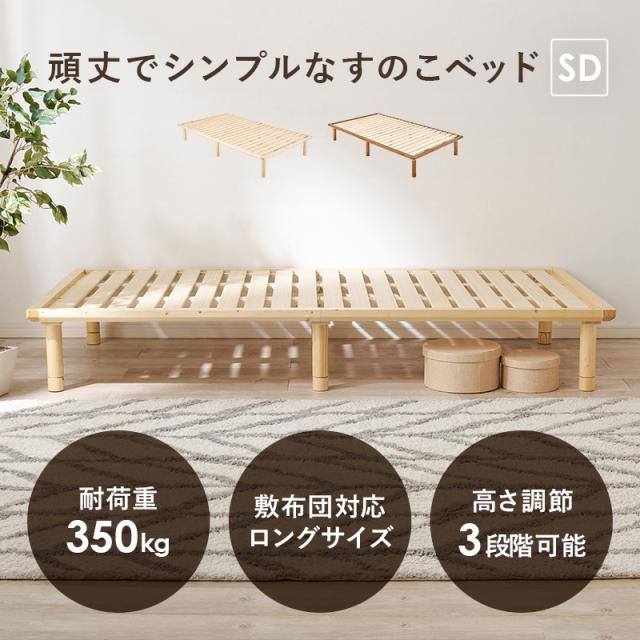頑丈 シンプル 脚付き すのこベッド セミダブル 【送料無料】 継ぎ脚 高さ調節 すのこベッドフレーム ロータイプ ローベッド 宮なし 天然木 パイン材 低め 丈夫