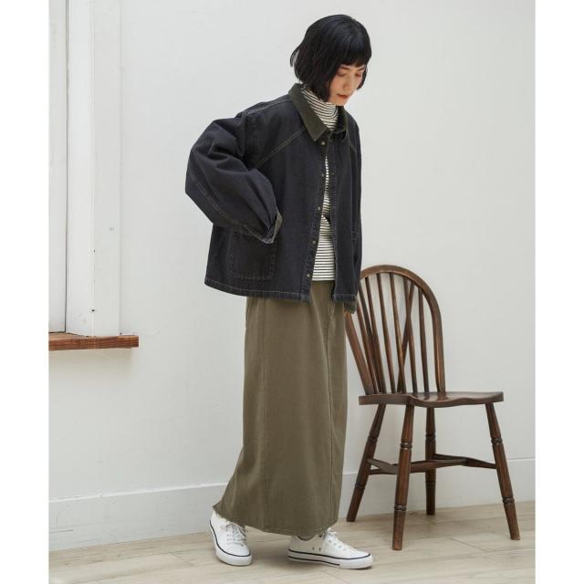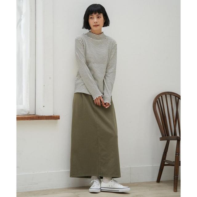 ほんのりハイウエストで、縦のラインを意識したナローシルエットが魅力の「LBCステッチナロースカート」。