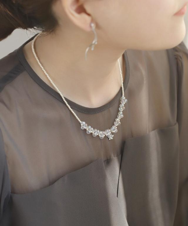 光を受けて煌めくビーズやビジューが、デコルテを華やかに飾るネックレス。