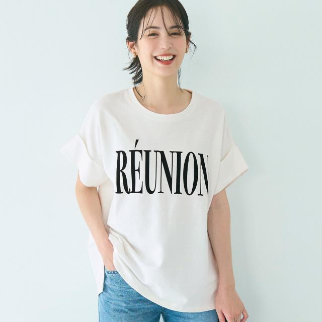 1枚でサマになるロゴTシャツに、トレンド感のある大きめロールアップ袖をプラス。