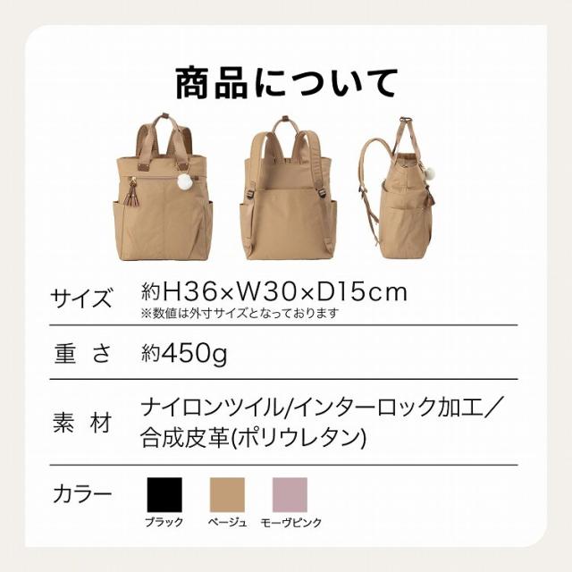 リュックサック トートリュック 軽量 A4収納可 カナナプロジェクト タッセル 68874