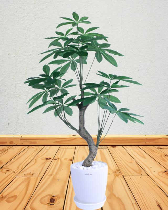 花緑の楽園 人工観葉植物 光触媒品 パキラ140受け皿付き 日本製 職人手作り