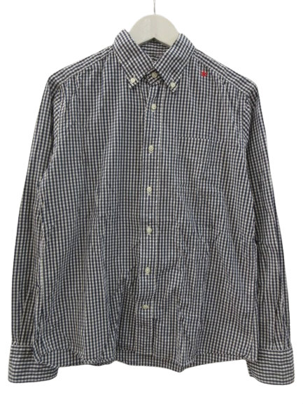 【中古】スウィープ ロサンゼルス シャツ 長袖 ボタンダウン ギンガムチェック ブルー ホワイト 綿 コットン 2 M メンズ