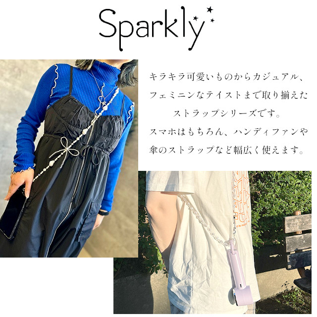 キラキラ可愛いものからカジュアル、フェミニンなテイストまで取り揃えたストラップシリーズです。