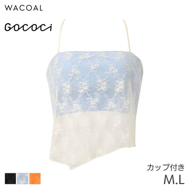 ノンワイヤーブラ ワイヤーなし ブラトップ ブラキャミソール カップ付き リブ生地 ストラップレス クロスバック ベアトップ レイヤードスタイル 重ね着 アウターライク レース レーシィ ビスチェ 着こなし おしゃれ セクシー ヘルシー ミニマル ゴコチ クーミー クーミィ ワコール HGG244