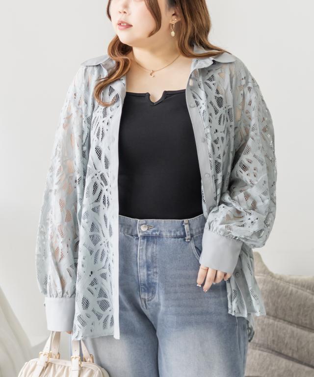 | 3Lサイズを着用しました。リブ素材がほどよくフィットして、ぴったりのサイズ感で着られました。胸元はキーネックのデザインになっていて、見せても可愛いのでシャツやカーデのインナーにぴったり◎1枚持っていると着回しの幅が広がります! |