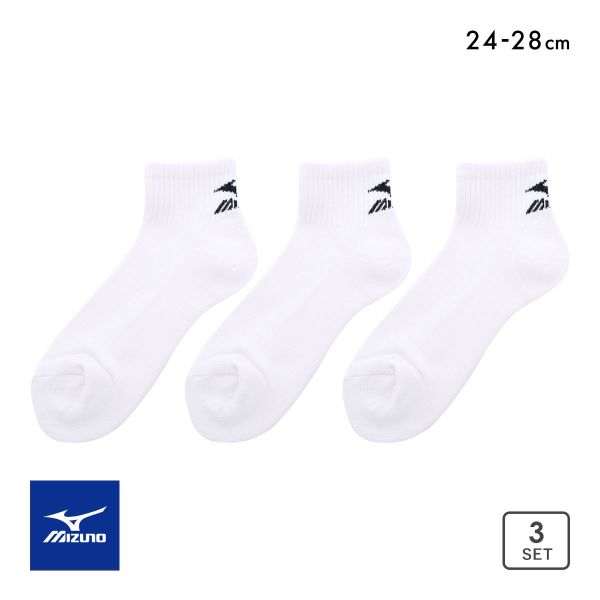 ミズノ ソックス ショート丈 3足セット 破れにくい 丈夫 つま先かかと補強 白 足底パイル メンズ 24-26cm 26-28cm 靴下 MIZUNO 10%OFF
