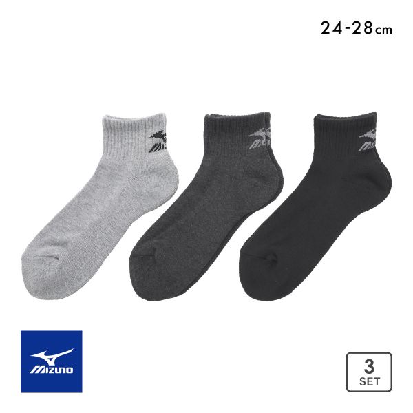 ミズノ ソックス ショート丈 3足セット 破れにくい 丈夫 つま先かかと補強 足底パイル メンズ 24-26cm 26-28cm 靴下 MIZUNO 10%OFF