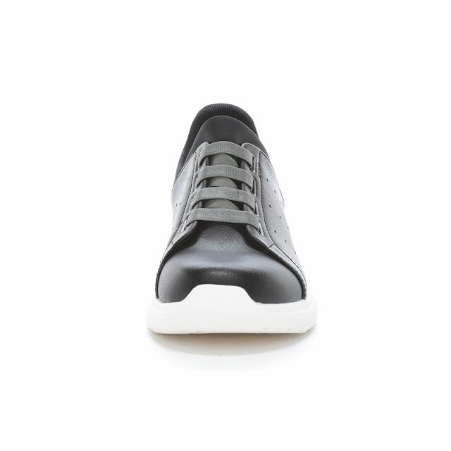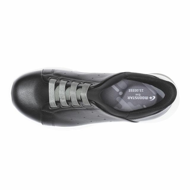 「ムーンスター イブ」のカジュアルシューズです。ハンズフリーの「らくにすぽっと履ける靴」シリーズです。スタイリッシュな印象のカジュアルスニーカーです。履口のストレッチ素材とゴム紐で脱ぎ履きがとても簡単、楽してオシャレも楽しめる一足です。ヒールの高さは4.5cmで、重量は23.0cmで片足約210gの軽量設計です。【イージーゴー】1ステップでEASYにGO!脱ぎ履きラクラクな設計です。【ワイド設計】幅広の方に対応した商品です。【やわらか設計】足になじみやすい柔らかな素材を使用しています。【非対称カウンター】外側よりも内側が長いカウンターを搭載することで踵が内側に倒れるのを防ぎます。【衝撃吸収】歩行時の足・膝・腰にかかる負担を和らげるよう衝撃を吸収する素材を使用しています。【つまずき防止】つまずきにくいアウトソール設計です。【ガラス防滑ソール】ガラス(粒子、繊維)入りゴム配合で防滑性に優れ、氷や濡れた大理石でも快適に歩行ができます。【Ag+抗菌防臭】銀イオンの抗菌作用でにおいのもととなる菌の増殖を抑制し、防臭効果を発揮します。天然由来成分で安全です。【軽量設計】軽くなるような工夫を施した設計