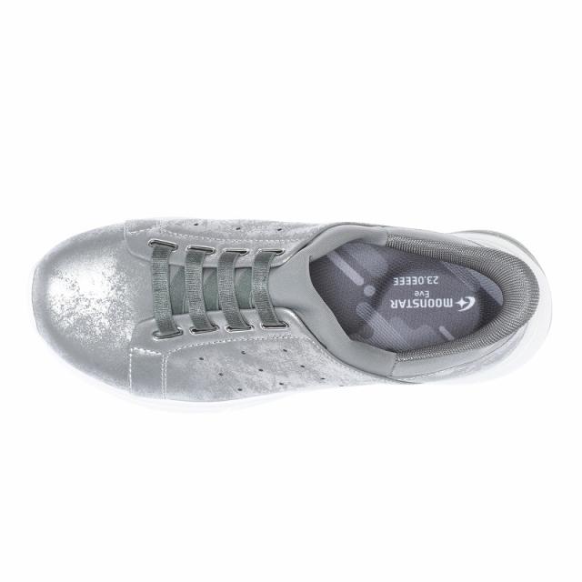「ムーンスター イブ」のカジュアルシューズです。ハンズフリーの「らくにすぽっと履ける靴」シリーズです。スタイリッシュな印象のカジュアルスニーカーです。履口のストレッチ素材とゴム紐で脱ぎ履きがとても簡単、楽してオシャレも楽しめる一足です。ヒールの高さは4.5cmで、重量は23.0cmで片足約210gの軽量設計です。【イージーゴー】1ステップでEASYにGO!脱ぎ履きラクラクな設計です。【ワイド設計】幅広の方に対応した商品です。【やわらか設計】足になじみやすい柔らかな素材を使用しています。【非対称カウンター】外側よりも内側が長いカウンターを搭載することで踵が内側に倒れるのを防ぎます。【衝撃吸収】歩行時の足・膝・腰にかかる負担を和らげるよう衝撃を吸収する素材を使用しています。【つまずき防止】つまずきにくいアウトソール設計です。【ガラス防滑ソール】ガラス(粒子、繊維)入りゴム配合で防滑性に優れ、氷や濡れた大理石でも快適に歩行ができます。【Ag+抗菌防臭】銀イオンの抗菌作用でにおいのもととなる菌の増殖を抑制し、防臭効果を発揮します。天然由来成分で安全です。【軽量設計】軽くなるような工夫を施した設計