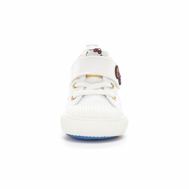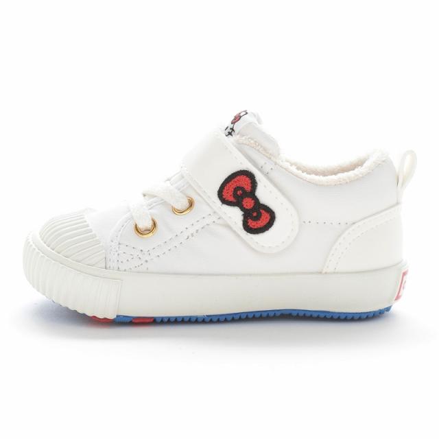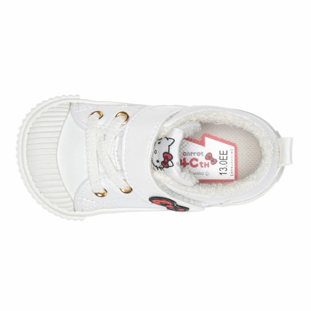 「こどもの足にいいことぜんぶ」の想いから生まれた「キャロット」の国産ベビーシューズ。ムーンスターの機能性子ども靴「キャロット」40周年を記念した特別仕様です。40周年モデルの第2弾として日本が誇る国民的なキャラクターであるハローキティとのコラボアイテムです。甲バンドにはキティちゃんを模したリボンとキティちゃんの体重はリンゴ3つ分なので、リンゴ3つの刺繍がポイントです。限定デザインの中敷きサテンシールや織ネームがポイント。時代を問わず履き続けられる飽きの来ないデザインに仕上げました。ヴァルカナイズ製法ならではのしなやかで丈夫な仕上がりと温かみのある風合いが特徴の一足。脱ぎ履きしやすいゴム紐×バンドタイプで、通園からお出かけまで幅広く活用いただけます。独自開発の「4つの機能(つま先ゆったり、カウンターボックス、フレックスジョイント、洗えるインソール)」が、子どもの足の健やかな成長を促します。重さは13.0cmで片足約120gです。【つま先ゆったり】つま先にゆとりを持たせた形状で、足の指を圧迫せずにのびのび動かせます。【カウンターボックス】子どもの柔らかくゆがみやすい足を箱型構造でしっかり支えます。