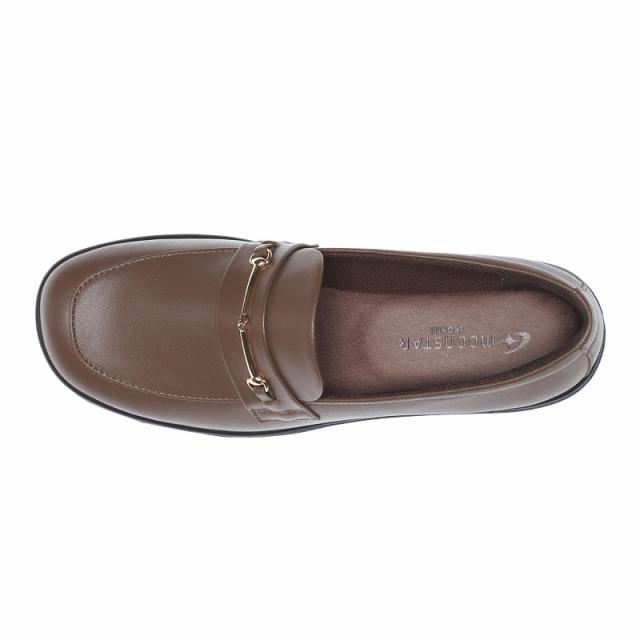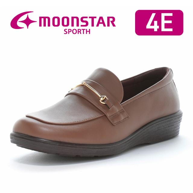 「ムーンスター スポルス」の履き心地にこだわったレディースコンフォートシューズです。丁寧な加工で仕上げた日本製ならではの履き心地です。甲部分は足にやさしいガーメントレザー(天然皮革)を使用し履くほどに足に柔らかくフィットします。中底はシフォンケーキのようなふっくら柔らかい素材をプラスしクッション感にこだわった機能「シフォンリラックス」を採用。トラッド調のビットローファーです。ヒールの高さは3.0cmで、重量は23.0cmで片足約195gの軽量設計です。【ワイド設計】4E設計で幅広の方に対応した商品です。【シフォンリラックス】中底に「ZFフォーム」という反発力と衝撃吸収性を持ち合わせた素材を使用しています。衝撃吸収性が従来素材に比べ約3倍になっているので足の負担を軽減します。【ベステック(R)ソール】ウレタンの劣化しやすい弱点を大きく改善した素材で、軽量性、弾力性、防滑性に富んだソールです。【足なり設計】足の特性に合わせて足裏にフィットするため、負担がかかりにくい設計です。【ガーメントレザー】天然皮革で柔軟性を持たせるため揉み加工を施したソフトレザーです。