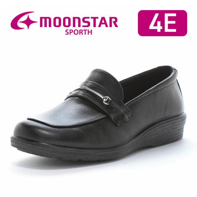 「ムーンスター スポルス」の履き心地にこだわったレディースコンフォートシューズです。丁寧な加工で仕上げた日本製ならではの履き心地です。甲部分は足にやさしいガーメントレザー(天然皮革)を使用し履くほどに足に柔らかくフィットします。中底はシフォンケーキのようなふっくら柔らかい素材をプラスしクッション感にこだわった機能「シフォンリラックス」を採用。トラッド調のビットローファーです。ヒールの高さは3.0cmで、重量は23.0cmで片足約195gの軽量設計です。【ワイド設計】4E設計で幅広の方に対応した商品です。【シフォンリラックス】中底に「ZFフォーム」という反発力と衝撃吸収性を持ち合わせた素材を使用しています。衝撃吸収性が従来素材に比べ約3倍になっているので足の負担を軽減します。【ベステック(R)ソール】ウレタンの劣化しやすい弱点を大きく改善した素材で、軽量性、弾力性、防滑性に富んだソールです。【足なり設計】足の特性に合わせて足裏にフィットするため、負担がかかりにくい設計です。【ガーメントレザー】天然皮革で柔軟性を持たせるため揉み加工を施したソフトレザーです。