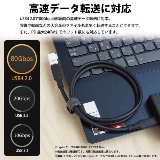 USB4 2.0で80Gbps(理論値)の高速データ転送に対応。