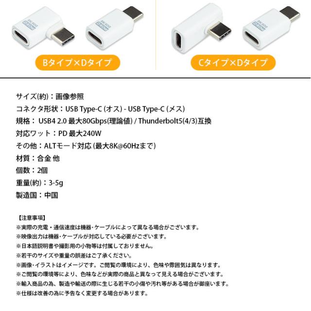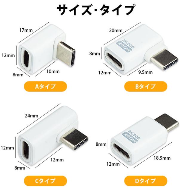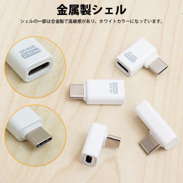 Type-C 変換 アダプタ 2個セット 角度変換 L型 L字型 ストレート USB4 2.0対応 最大240W 80Gbps Thunderbolt互換 変換コネクタ 充電 データ転送 USB C タイプ C PR-UA009-2ST【メール便 送料無料】